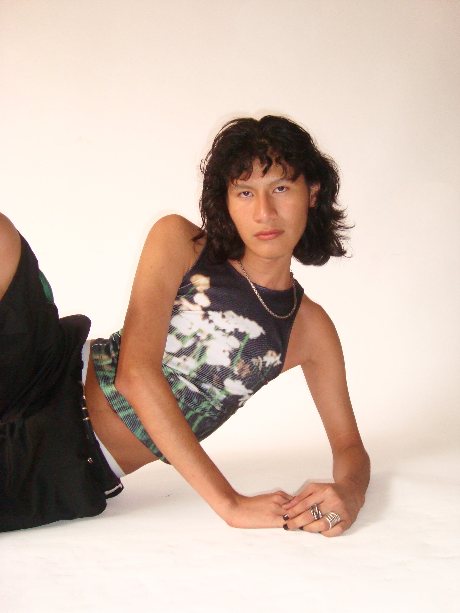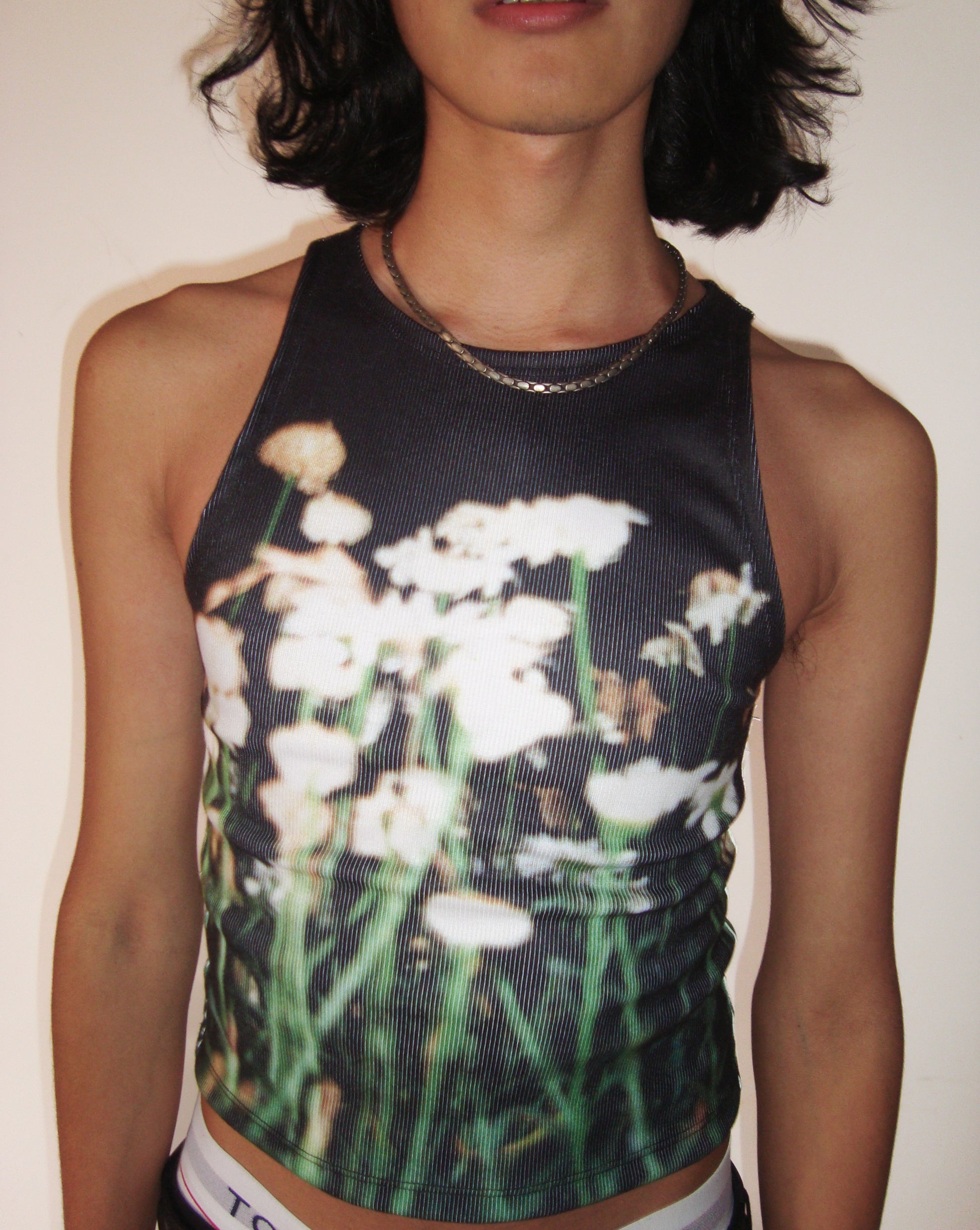 Rib cotton tank top with straight silhouette and slim fit. Feating a printed picture of nature. Seams are the same color of fabric.