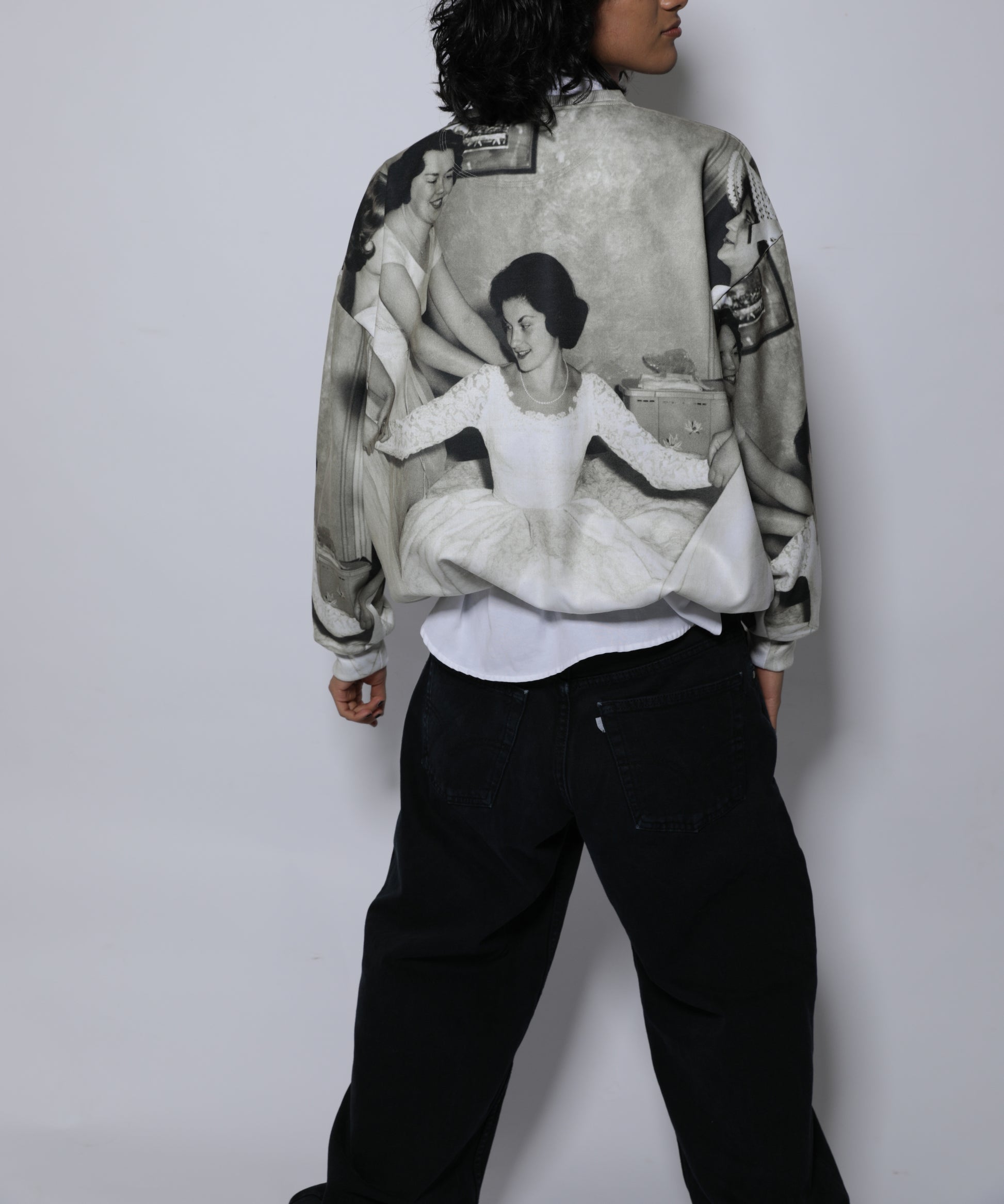 This sweatshirt shows Margaret putting on her wedding gown with some help from her friends.